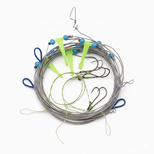 1 gevetero de 6 compartimientos con anzuelos de 3 medidas para variada, mosquetones, rotores y mostacillas.